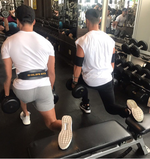 こちらはダンベルベンチという器具を使ってダンベルを持ち行なうトレーニングです!