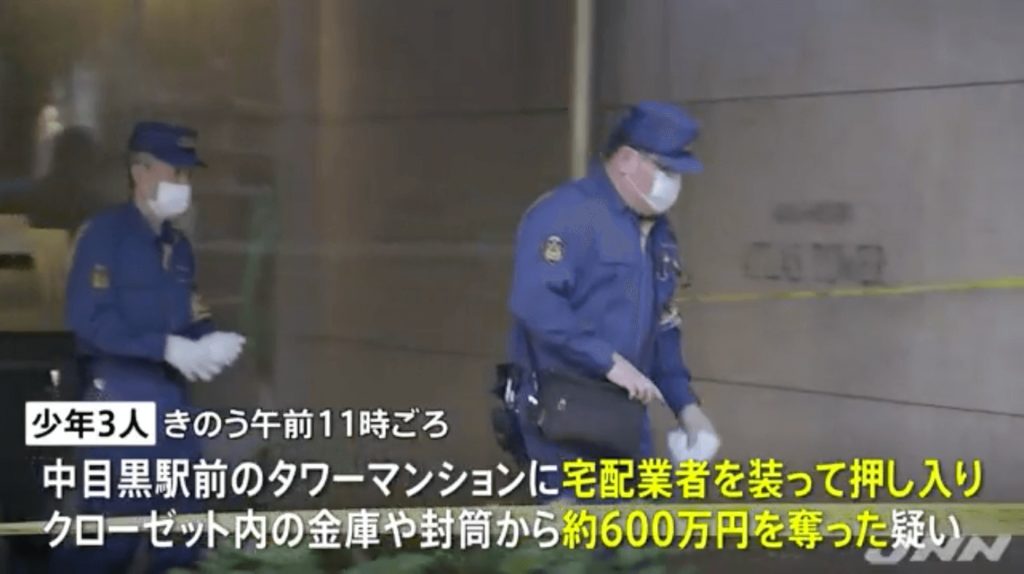宅配業者を装った未成年者3人によって都内の30代女性から現金600万円を強盗した『目黒タワマン強盗事件』