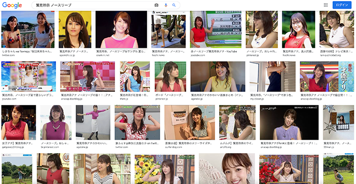 実際、画像検索をしてみると鷲見玲奈さんのノースリーブ姿が多く、このノースリーブ姿は競馬番組で多く見られるようですね。