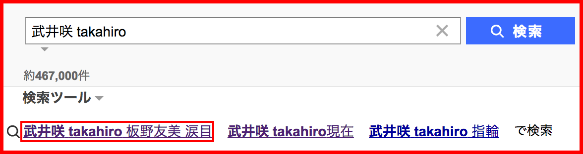 そのキーワードっていうのが「武井咲 TAKAHIRO 板野友美 涙目」というもの。